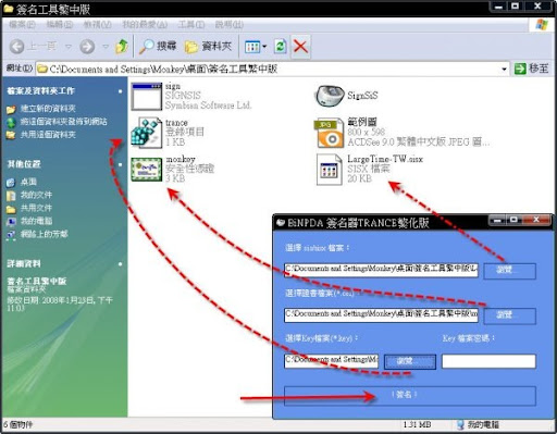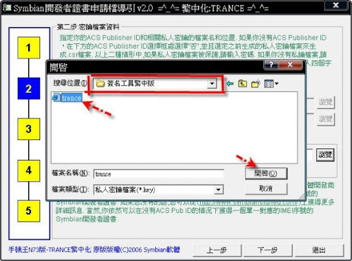 3-5~紅框位置請選擇剛下載的"簽名工具繁中版"照箭頭點選trance檔案後開啟