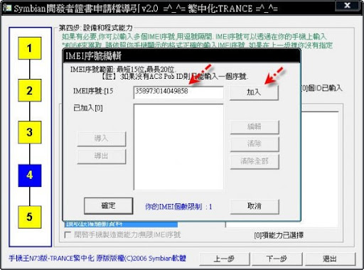 3-9~會出現一個視窗,上面框框把手機的IMEI碼打上去,再按右邊加入